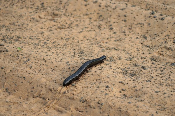 細長くて黒い虫の代表格とも言えるのが、こちらのヤスデ。種類にもよりますが全長は20mm~50mmほど。節状の細長い体に大量の足を有しており、思わずゾワッとする見た目をしています。